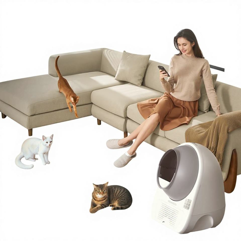 กล่องทรายแมวอัจฉริยะ AI พร้อมระบบทำความสะอาดอัตโนมัติ เป็นมิตรต่อสิ่งแวดล้อม ควบคุมผ่านแอพ 5G WiFi ดีไซน์ปลอดภัยป้องกันการหนีบ ความจุ 65 ลิตร สำหรับแมว