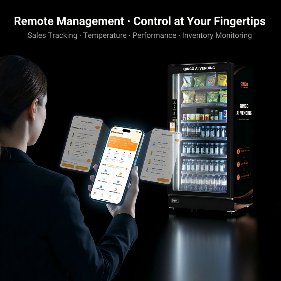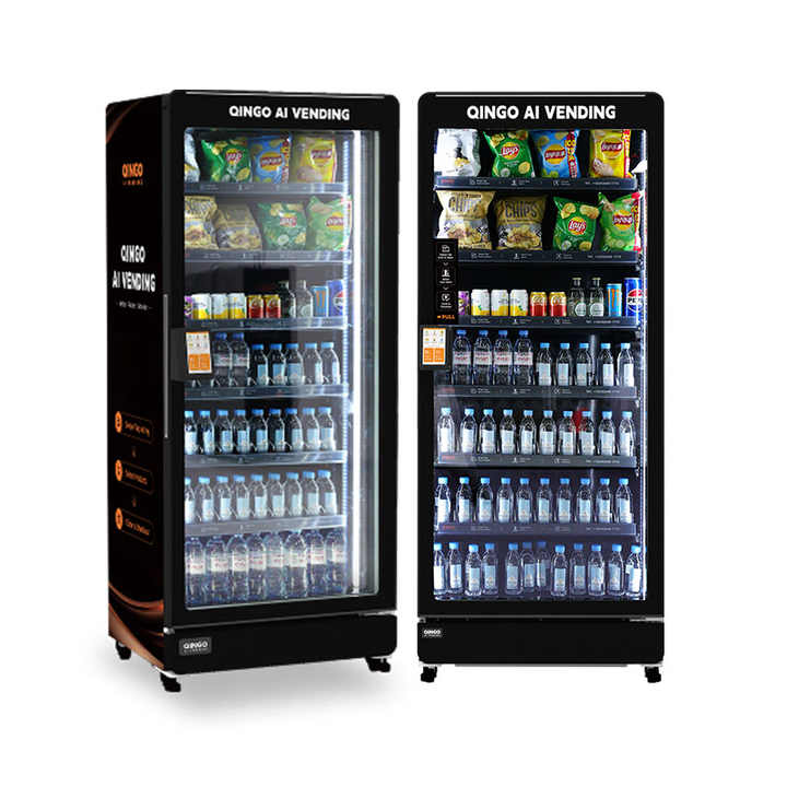 AI Cooler QINGO Ace Touchscreen Stainless Steel 580L Cashless Credit Card Coin Snack Drink Combo Commercial Vending Machine