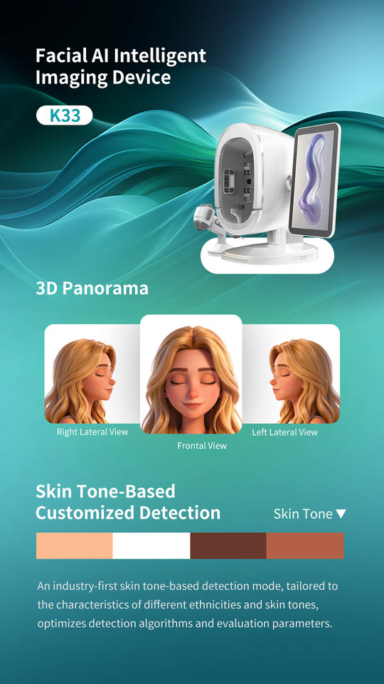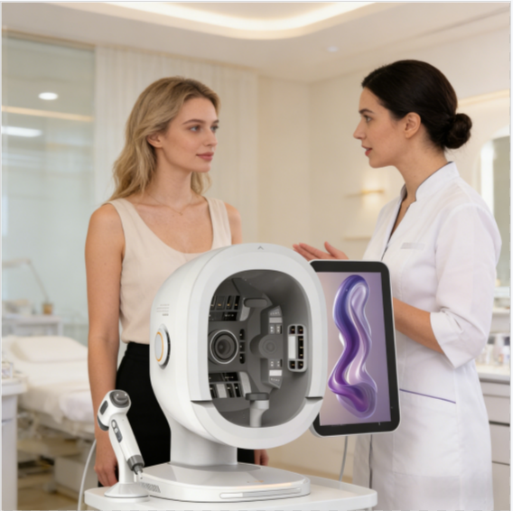 เครื่องวิเคราะห์ผิวหน้าด้วย AI แบบ 3 มิติ 8 สเปกตรัม ภาพถ่าย 36MP ระบบกล้อง 3 ตัว เครื่องตรวจสภาพผิวระดับมืออาชีพสำหรับร้านเสริมสวยและคลินิก