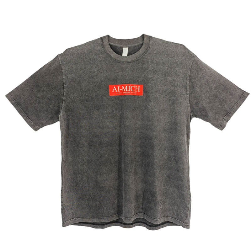 เสื้อยืดแขนสั้นคุณภาพสูง AI-MICH 275gsm ผ้าฝ้าย พิมพ์โลโก้ได้ ทรงโอเวอร์ไซส์ ล้างสีแบบแอซิดวอช สำหรับผู้ชาย