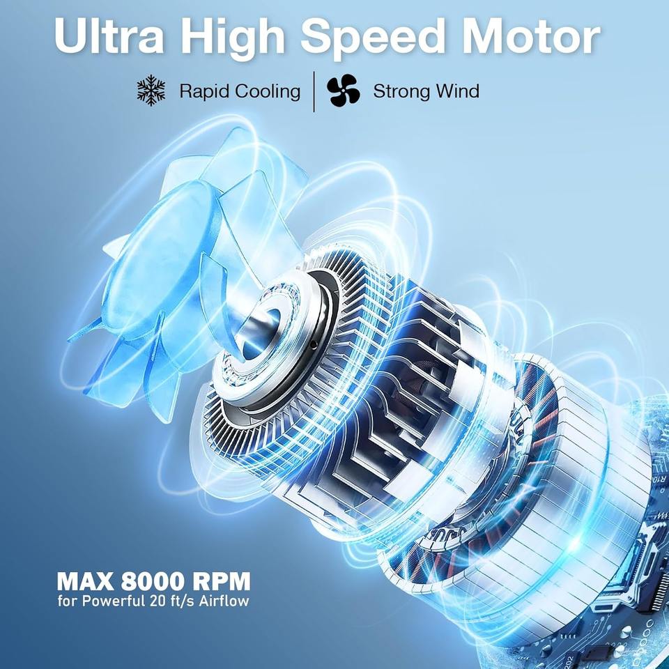 พัดลมคล้องคอ AI, พัดลมส่วนตัวแบบพกพาปรับความเร็วได้ 6 ระดับ, แบตเตอรี่ 6000 มิลลิแอมป์ ชาร์จซ้ำได้, พัดลมแบบสวมใส่ได้ ระบายความร้อนได้เร็วขึ้น
