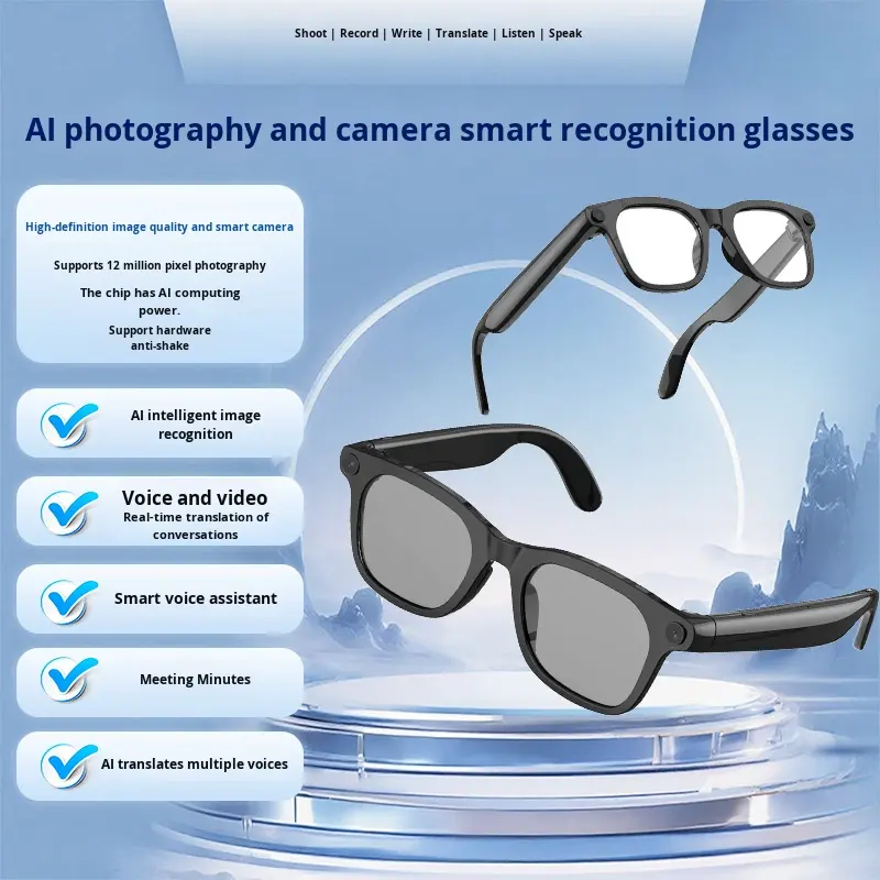 AI Smart Translation for Glasses with Dual Battery 1200w HD Photo Anti-shake Video Live Streaming Voice Activation Music