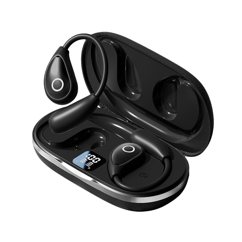 หูฟังไร้สาย AI Translate M95 M96 TWS พร้อมจอแสดงผล LED ดิจิตอล ระบบส่งเสียงผ่านอากาศ ไฟหายใจ ดีไซน์แบบเปิด พร้อมเคสหนังลายไม้