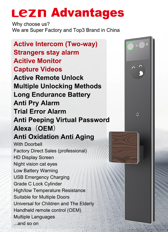 Function:AI Voice Control/Active intercom/Stranger stay alarm/Auto lock