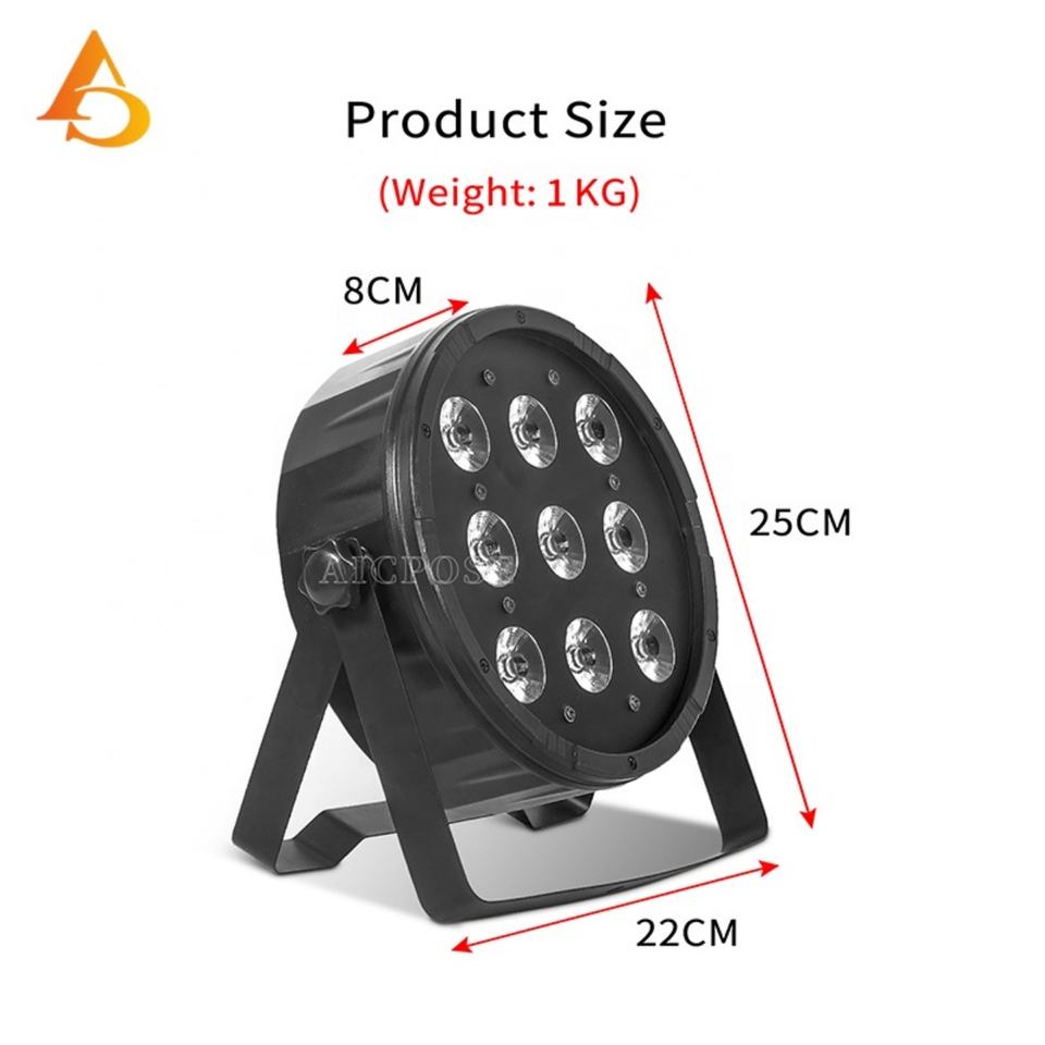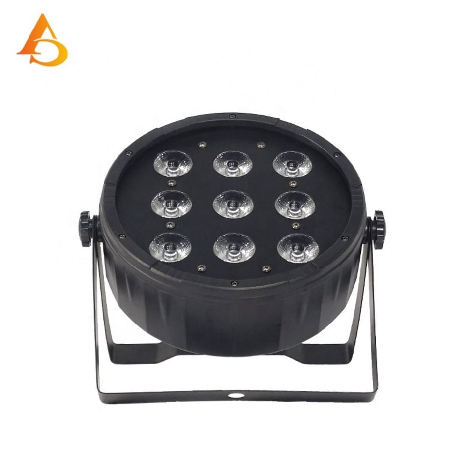 ไฟพาร์ LED AICPOSE คุณภาพสูง ขายส่ง พลาสติก 9 ชิ้น 12w 9 LED Par DMX RGBW 4in1 สำหรับเวที