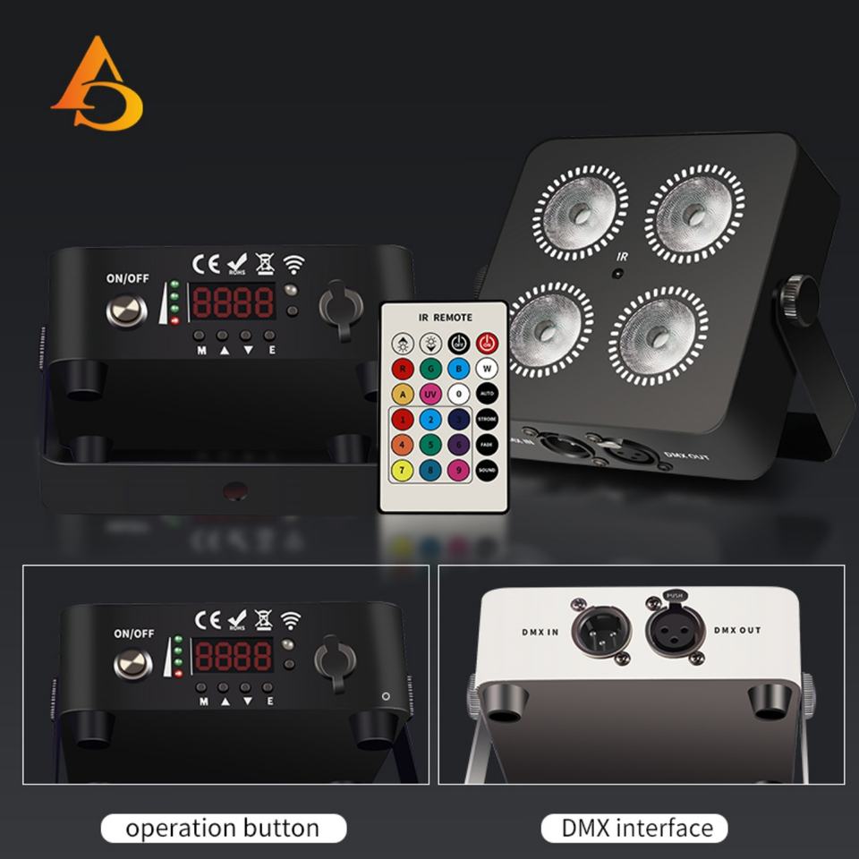 ไฟพาร์ LED แบตเตอรี่ AICPOSE รุ่นใหม่ ราคาคุ้มค่า 4x18w สำหรับเวที วัสดุสแตนเลส 6in1