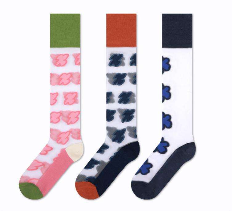 แห้งเร็ว, ป้องกันแบคทีเรีย, ระบายอากาศ, เป็นมิตรกับสิ่งแวดล้อม, Anti-Foul, โปร่งใส, ถุงเท้าแฟนซีสำหรับเด็กผู้หญิงเหนือเข่า
