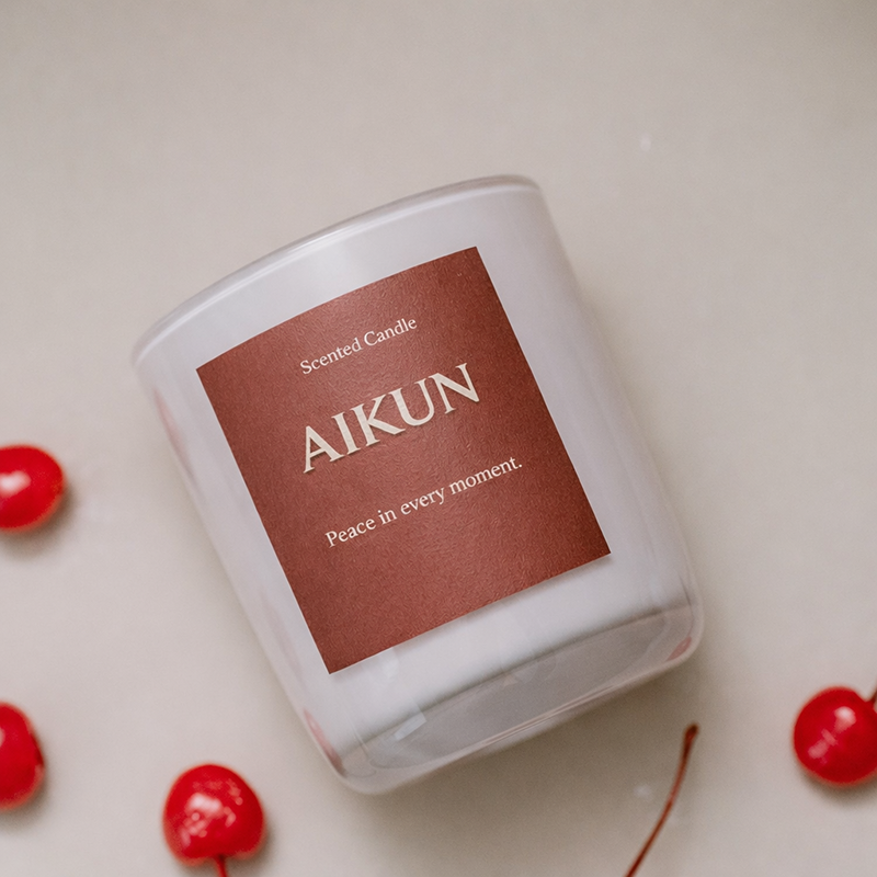 เทียนหอมอโรมาเธอราพี AIKUN กลิ่นเปปเปอร์มิ้นต์และยูคาลิปตัสในขวดแก้ว ให้ความสดชื่น เหมาะสำหรับสปาหรู