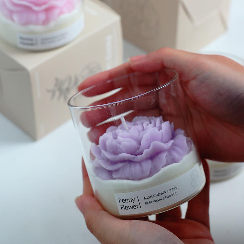 เทียนหอมถั่วเหลือง AIKUN ลายดอกโบตั๋นแกะสลักสุดหรู ทำมือในขวดแก้ว ของขวัญวันเกิด งานแต่งงาน วันหยุด ดีวาลี ติดทนนาน