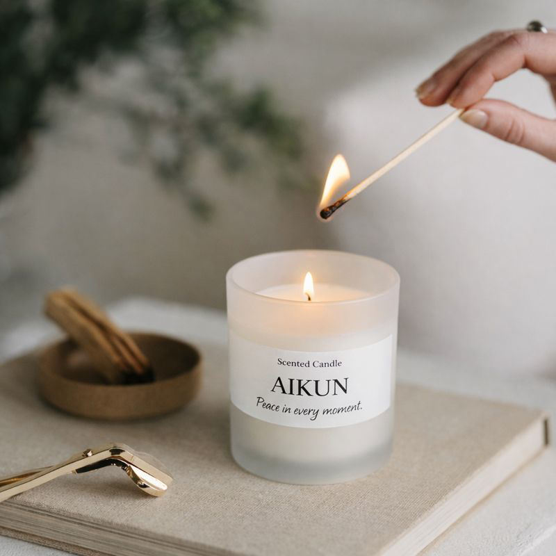 เทียนหอมอโรมาเธอราพี AIKUN ผลิตจากขี้ผึ้งถั่วเหลืองธรรมชาติ พร้อมบรรจุภัณฑ์ฉลากส่วนตัวสำหรับงานแต่งงาน