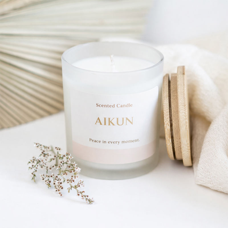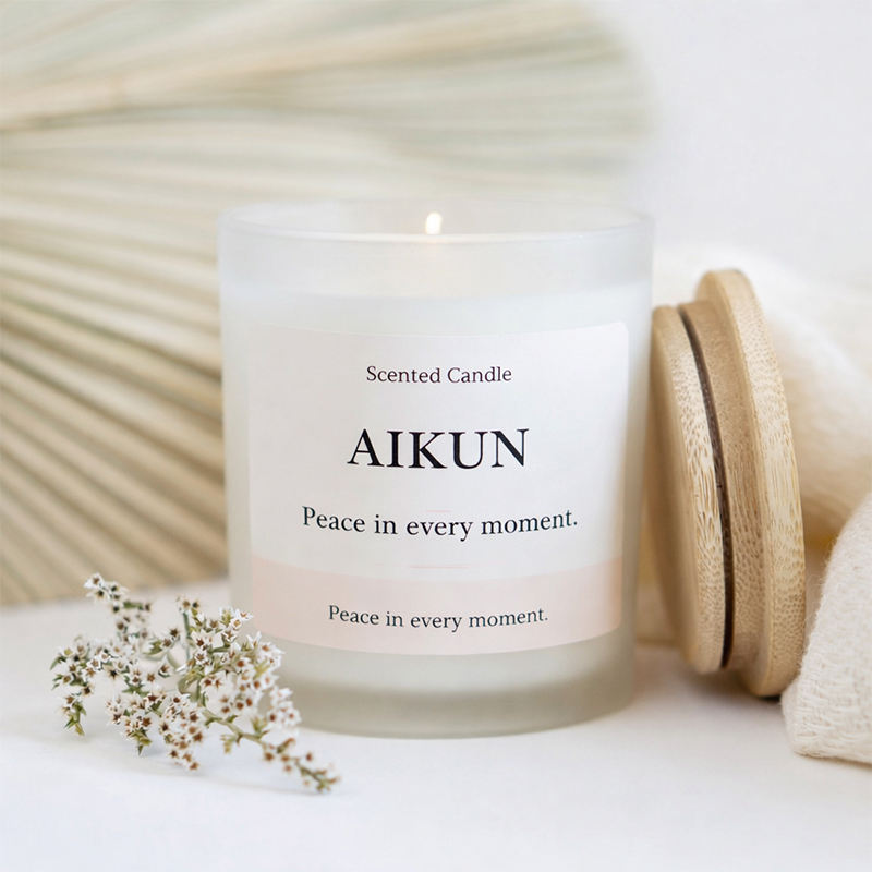 เทียนหอมอโรมาเธอราพีจากโรงงาน AIKUN โดยตรง ไร้ควัน เป็นมิตรกับสิ่งแวดล้อม เทียนในขวดแก้วหรูหรา สำหรับงานแต่งงาน ชุดของขวัญ