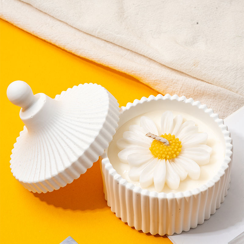 AIKUN INS Ceramic 3D Daisy Scented Candle Gift Box Aromatherapy Wedding Decor Rose Lavender Scent