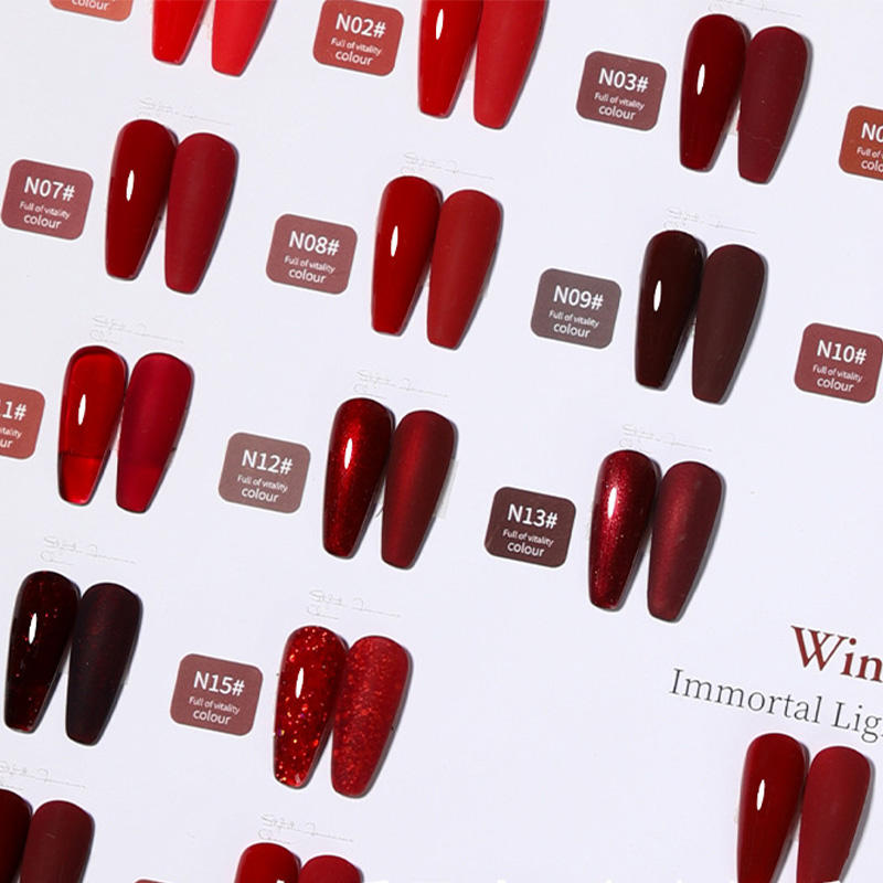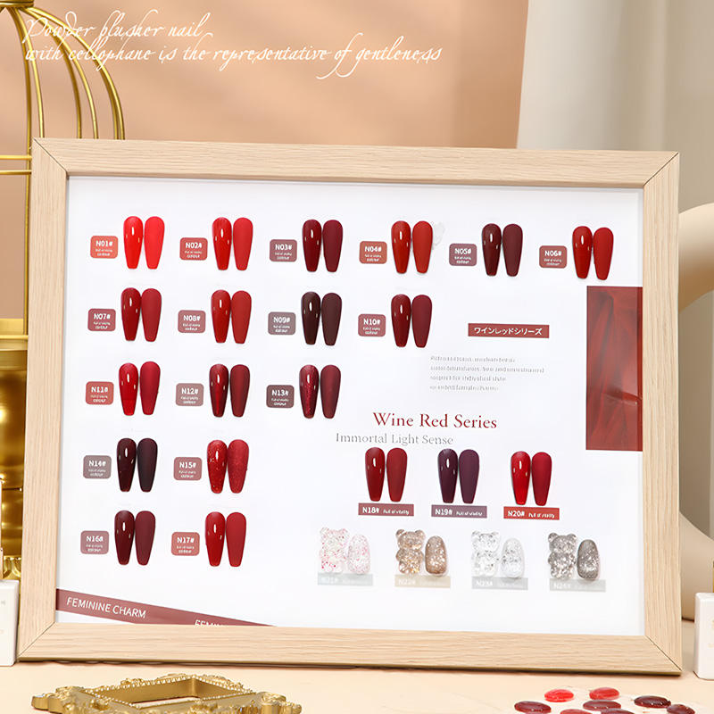 Ailanuo ชุดกาวทาเล็บสีแดงพรีเมี่ยม24สี15มล. ทันสมัยเพื่อโชว์กาวสีขาว