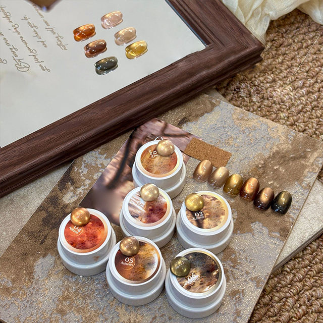 Ailanuo ชุดดวงตาแมว6สี15มล. สำหรับต้อนรับฤดูใบไม้ร่วงสีทองเหมาะสำหรับงาน DIY ผู้จำหน่ายเจลทาเล็บ