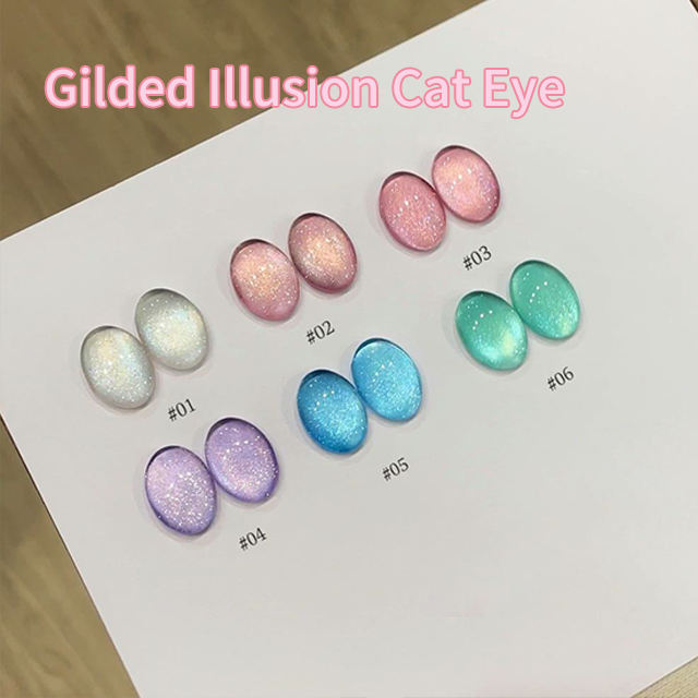 Ailanuo กาวน้ำมันทาเล็บรูปแมวภาพลวงตา6สีทอง15มล. ทันสมัยเหมาะสำหรับงานประดิษฐ์ด้วยตัวเอง