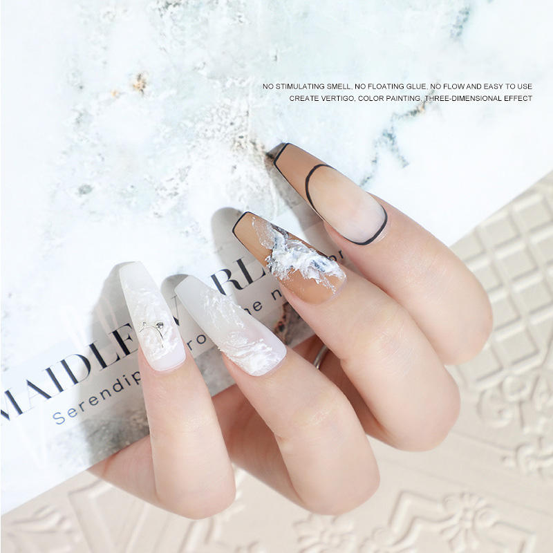 Ailanuo ชุดกาวพลาสเตอร์ตกแต่งเล็บ6สี, กาวทรายไหลแบบย้อนยุคกาวสามมิติแบบปรับสีได้