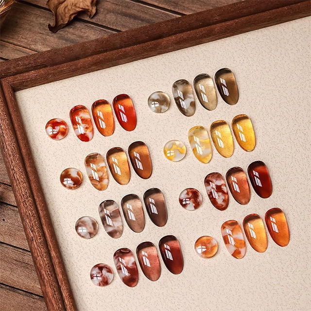 AILANUO ชุดยาทาเล็บเจลสีอำพัน 8 สี รุ่น Exquisite Amber Series OEM 15 มล. ยาทาเล็บเจลแบบ Cat-eye สำหรับร้านทำเล็บ
