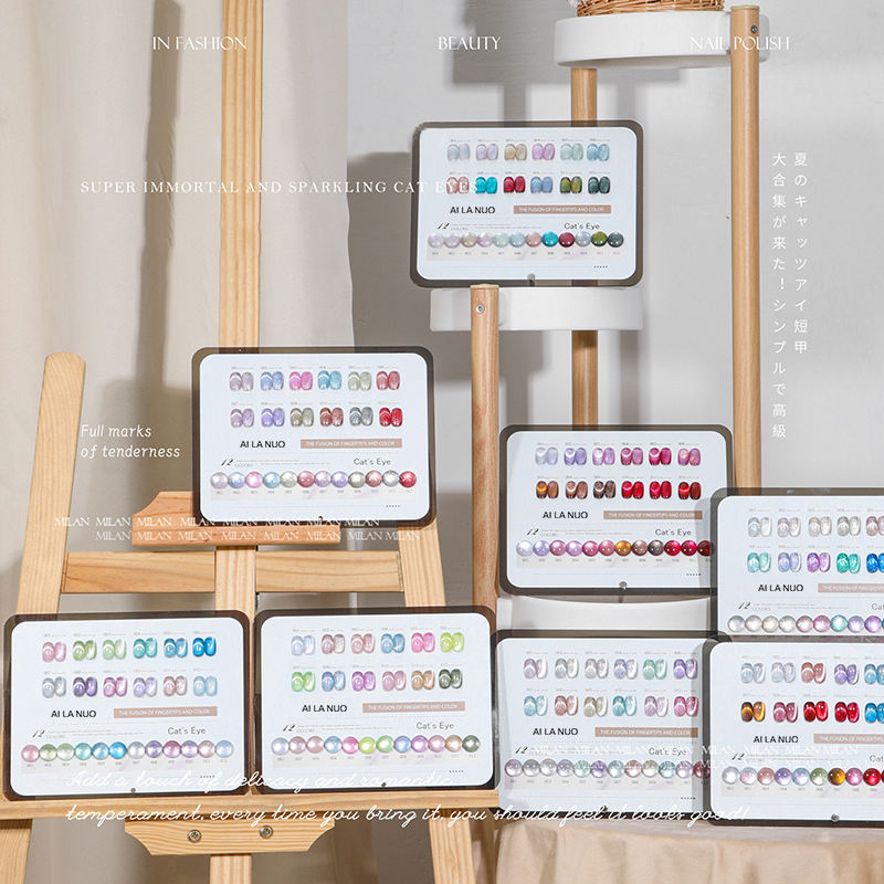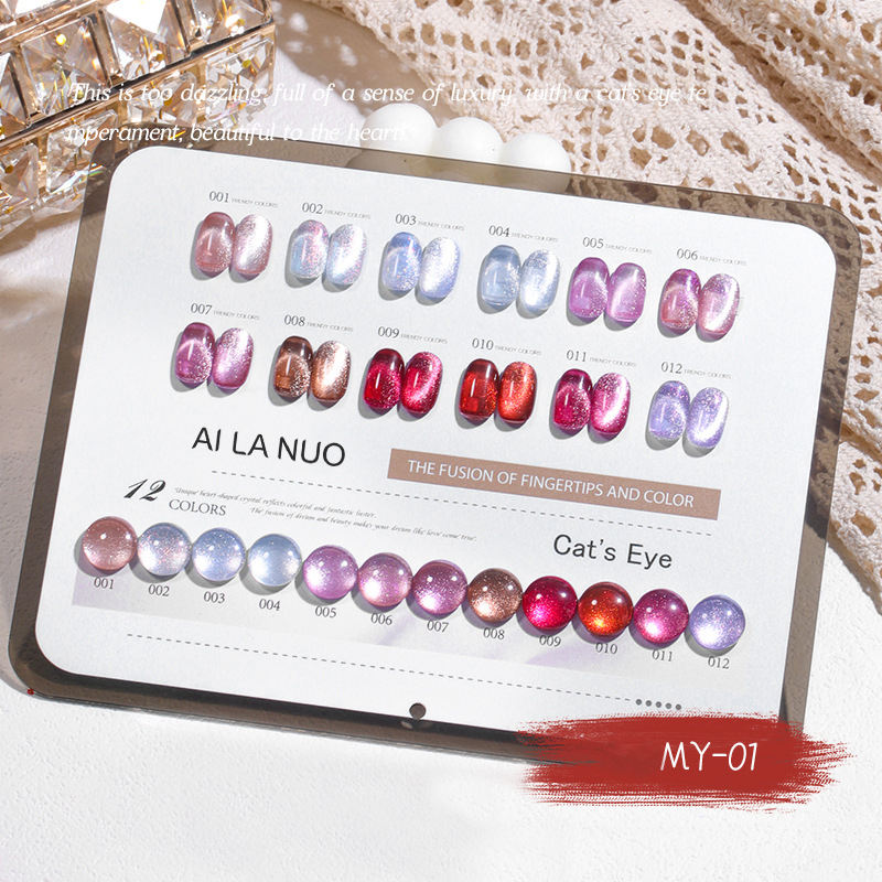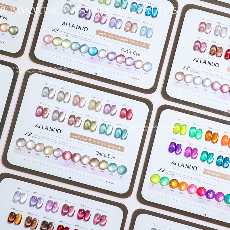 AILANUO 9D Cat Eye Nail Polish Set 12 Color Spring Summer Blue Green Nude Purple Collection Sparkle Glitter Moonlight Gel Polish