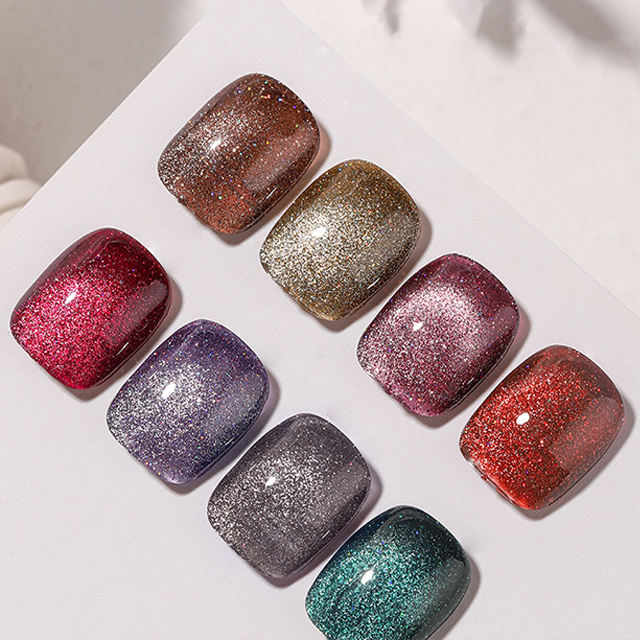 Ailanuo ชุดตาแมวสำหรับดวงตาของแมวลายดาวมะม่วงทรายสีเงิน16สี15มล. คุณภาพสูงเหมาะสำหรับ DIY ผู้จำหน่ายกาวทาเล็บ