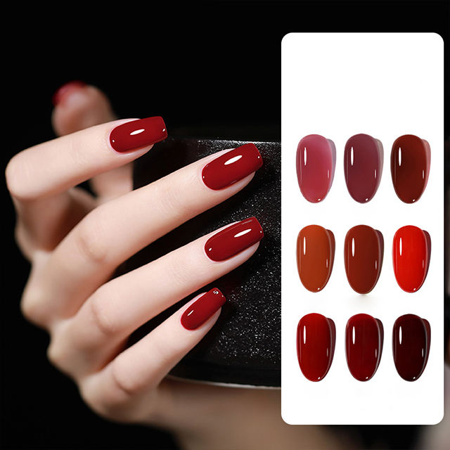 Ailanuo น้ำยาทาเล็บเคลือบฐานสีแดงกึ่งน้ำตาลใช้งานได้เหนียว15สีคุณภาพสูงปรับแต่งได้ตามต้องการ
