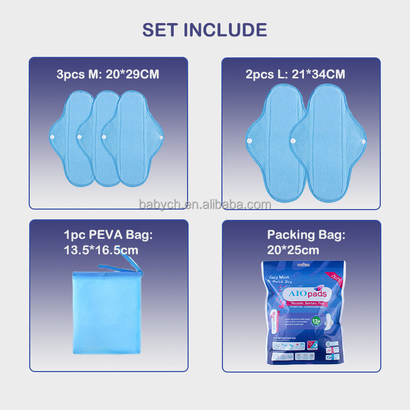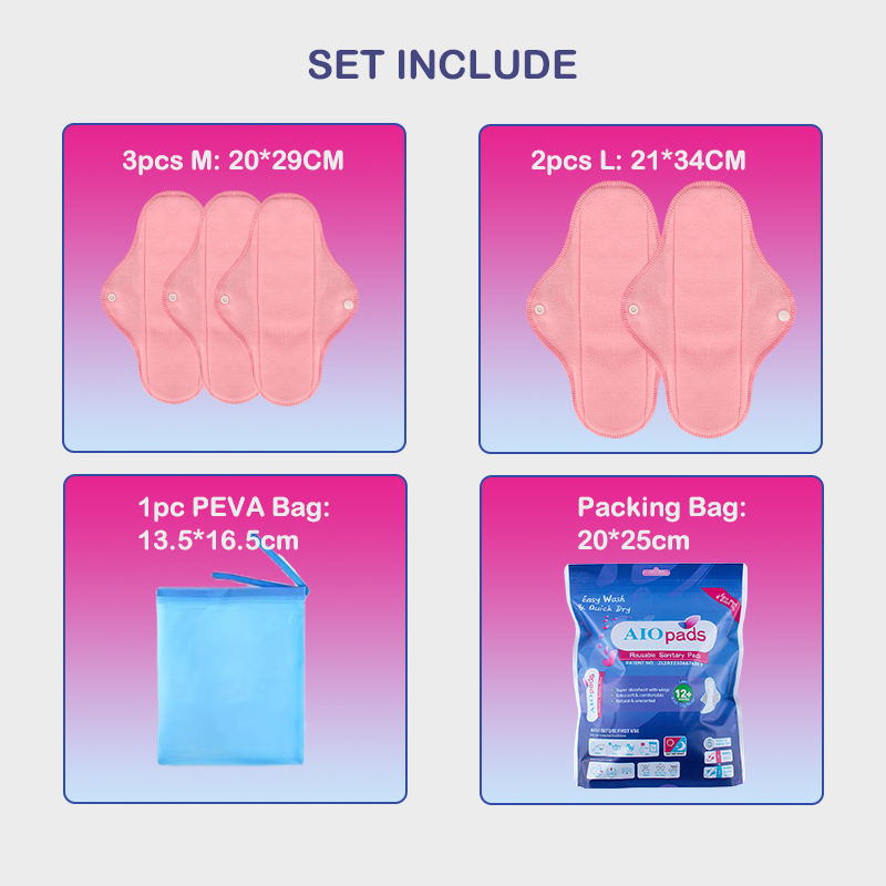 AIO ชุดแผ่นอนามัย6ชิ้นแบบนำกลับมาใช้ใหม่ได้แผ่นอนามัยแบบซับน้ำแผ่นอนามัยสำหรับผู้หญิงผ้าอนามัยแบบซับน้ำแผ่นซับประจำเดือน