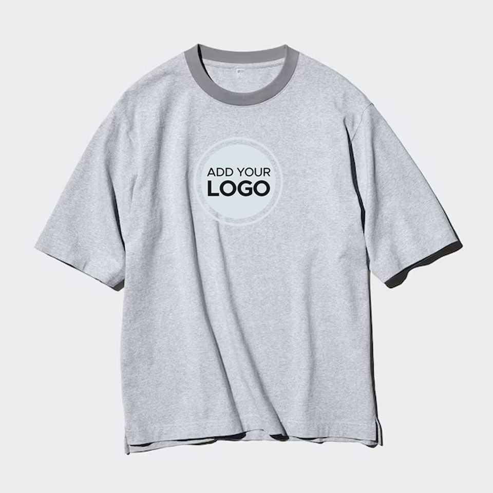 AIRism Ringer เสื้อยืดสำหรับผู้ชาย, เสื้อยืดโอเวอร์ไซส์ผ้าฝ้ายธรรมดาเสื้อยืดแขนสั้นเสื้อออกกำลังกายฤดูร้อน