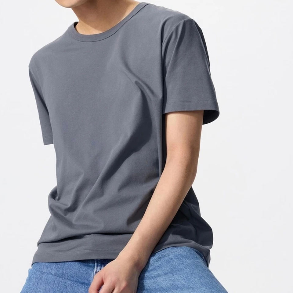 AIRism เสื้อคอตตอนแขนสั้นสำหรับผู้ชายเสื้อทรงแบ็กกี้เสื้อยืดลายกราฟิกขนาดใหญ่เสื้อยืดคอกลมใส่หน้าร้อน