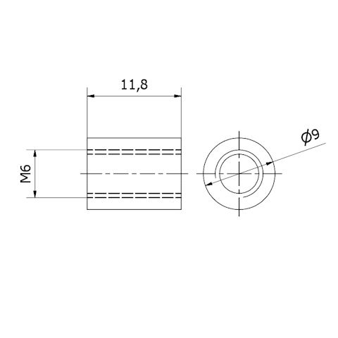 Aisi 304ตะแกรงสแตนเลส D.9 L.12พร้อมด้าย M6 C110409 Sku สำหรับราวบันไดและราวบันได