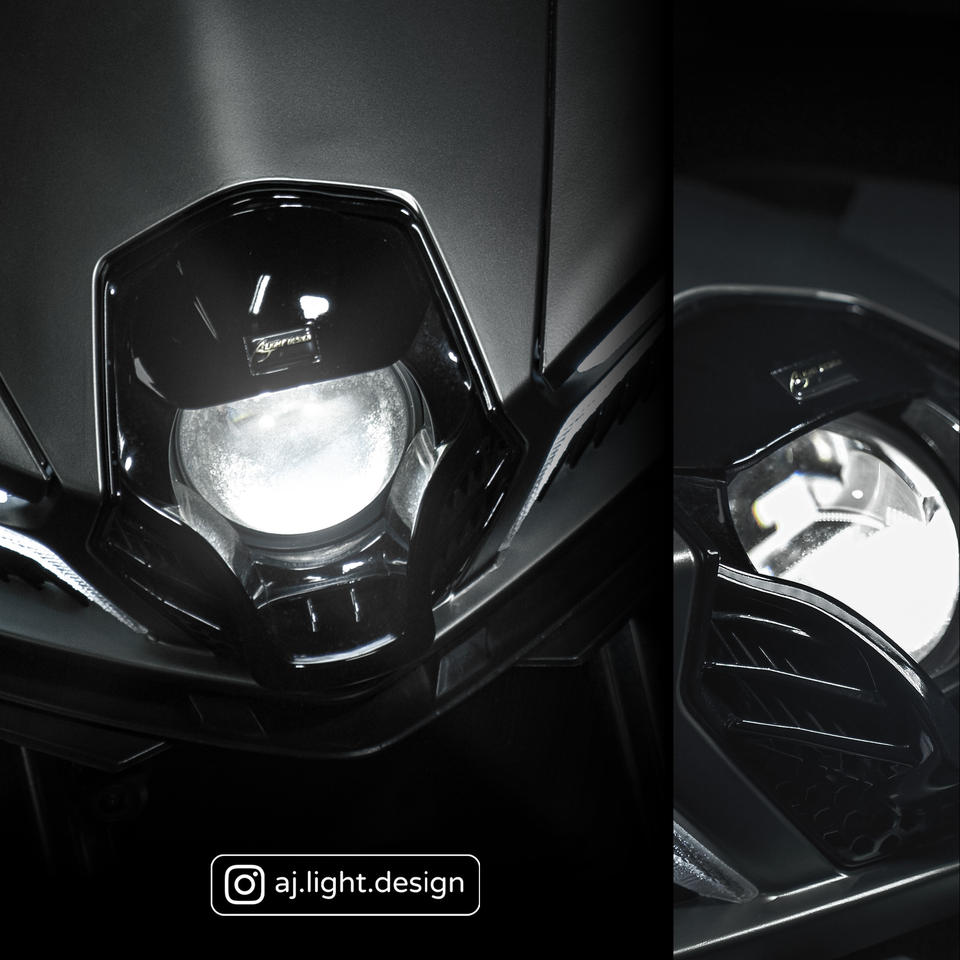 ชุดระบบไฟรถจักรยานยนต์อเนกประสงค์แบบตาปีศาจไฟหน้าสีเหลืองไฟหน้าสีขาวธรรมชาติด้านหน้า