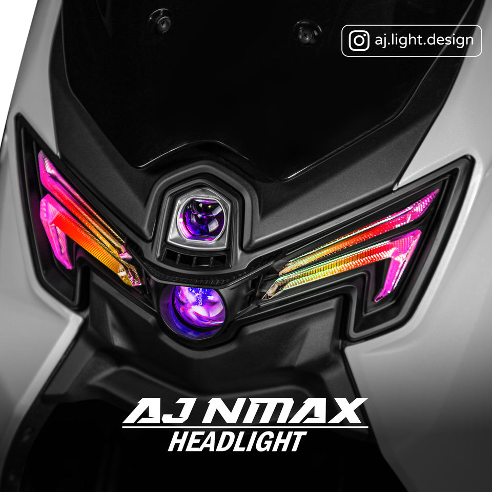 ไฟหน้าคู่ LED RGB รุ่น NMAX V3 ของ AJ LIGHT DESIGN พร้อมไฟวิ่งกลางวัน ชุดอัพเกรดสำหรับรถมอเตอร์ไซค์ AJNMAX-HL ผลิตภัณฑ์ไฟส่องสว่างสำหรับรถจักรยานยนต์จากไต้หวัน