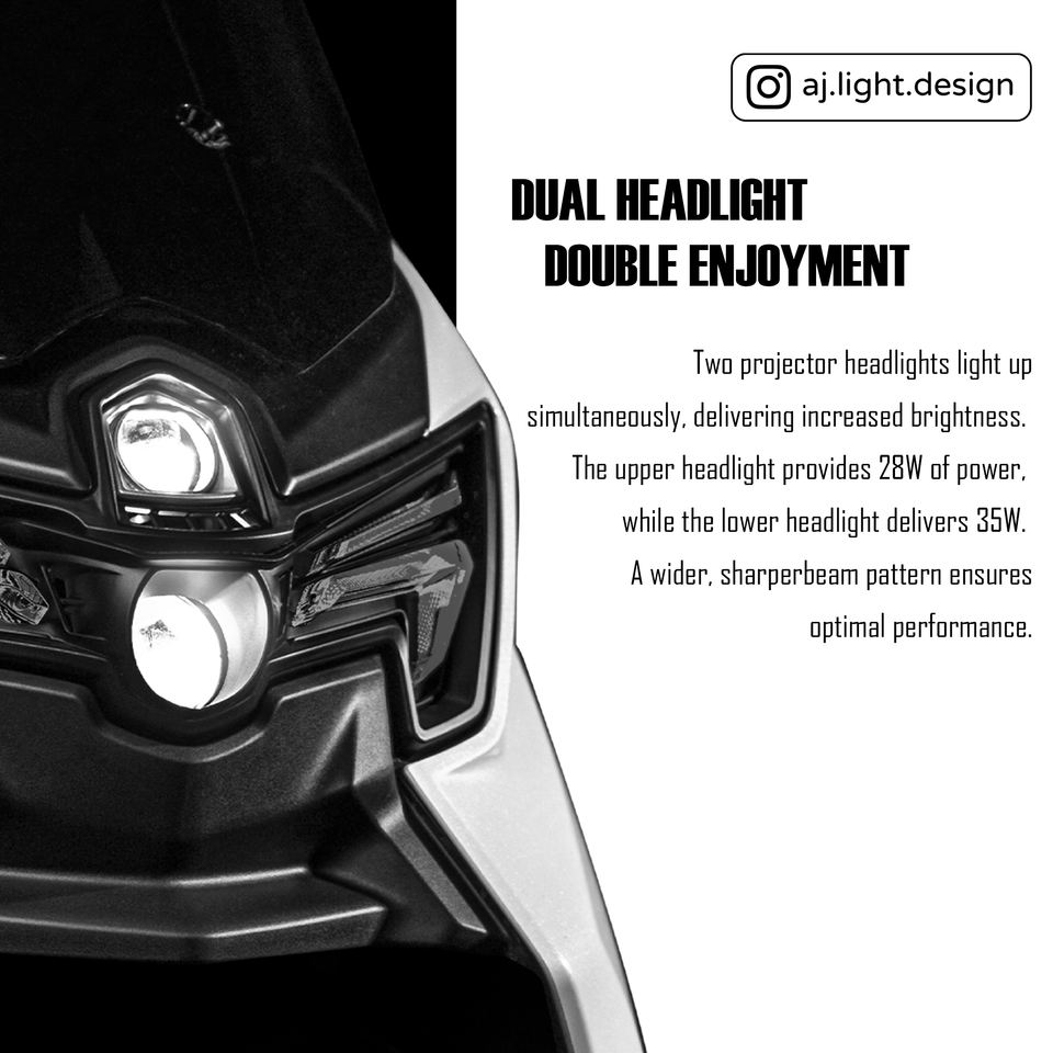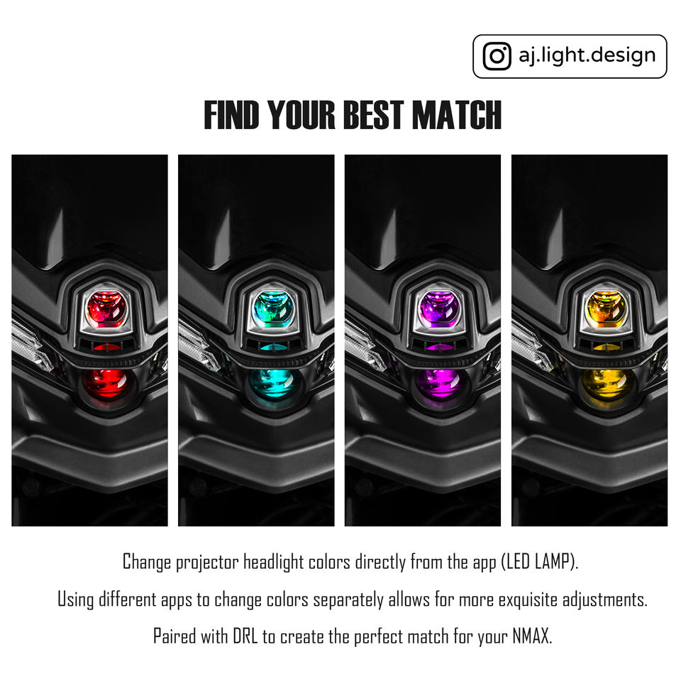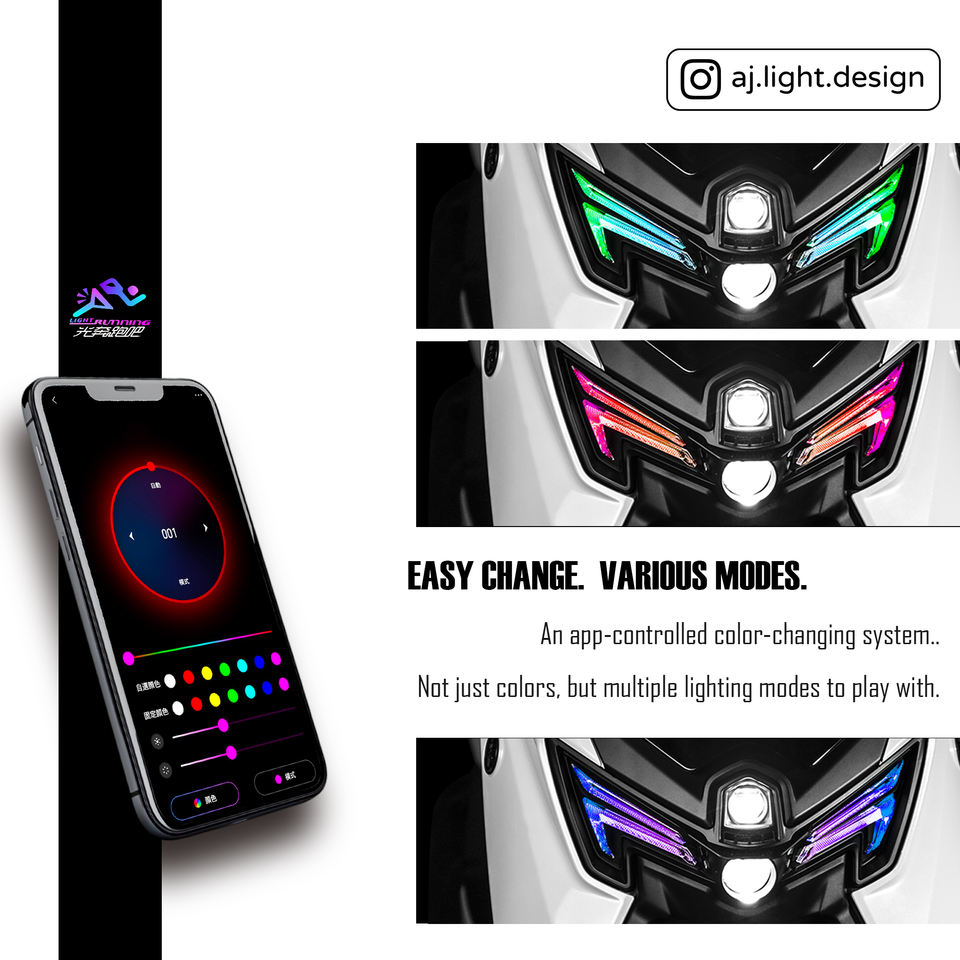 ไฟหน้า LED RGB 2 เลนส์ AJLIGHT DESIGN พร้อมไฟวิ่งกลางวัน สำหรับรถมอเตอร์ไซค์ไต้หวัน NMAX V3 รับประกัน 12 เดือน