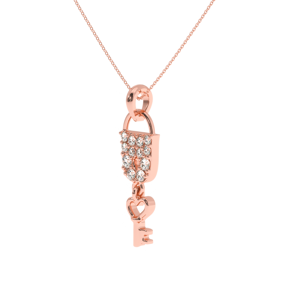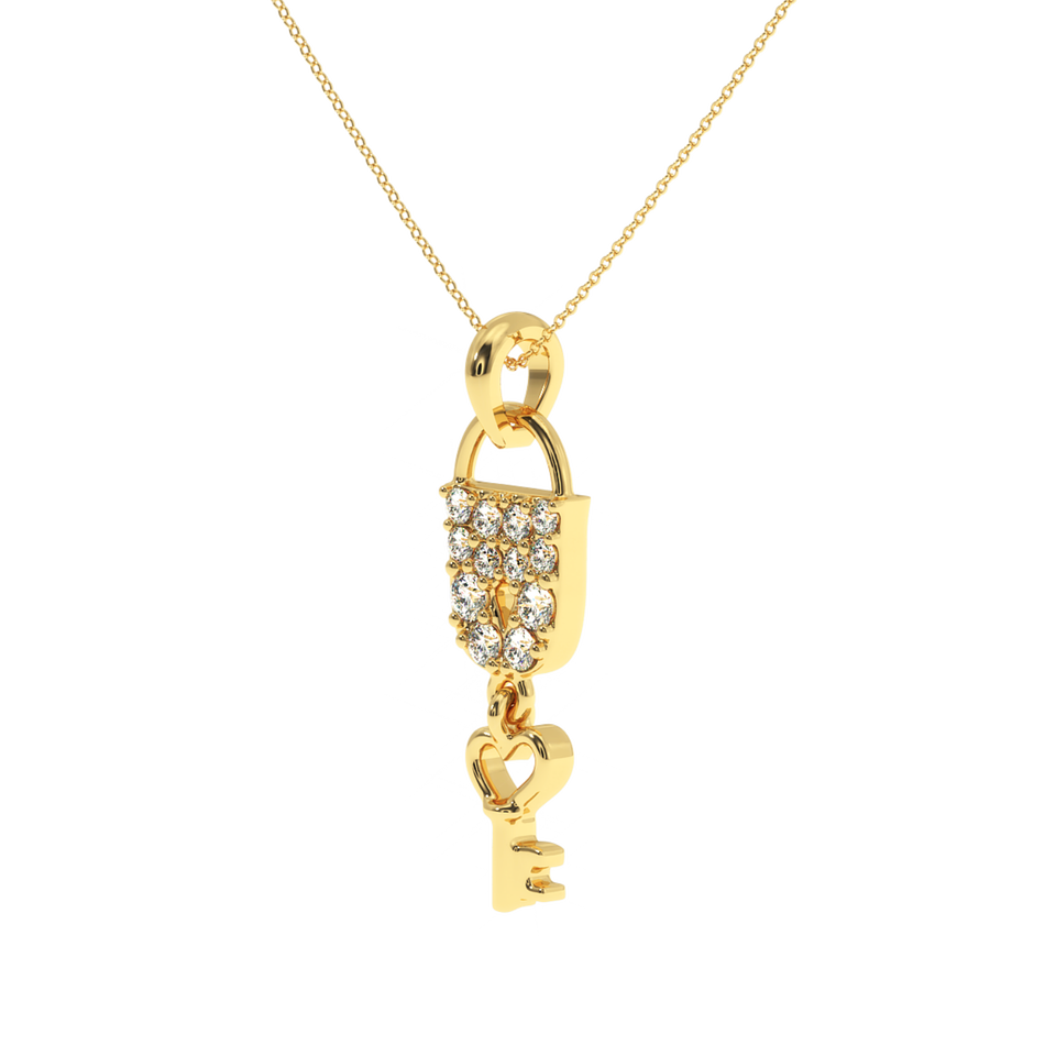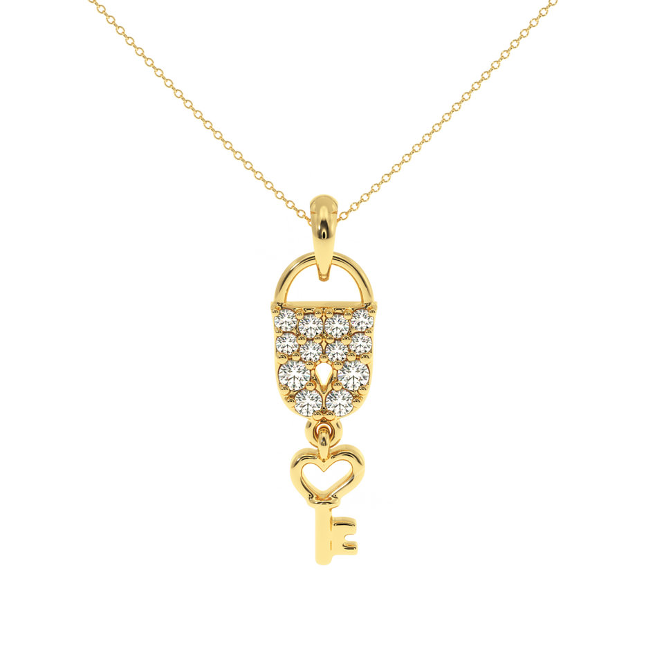 AJRETAIL จี้รูปแม่กุญแจรักประดับเพชร 0.23 กะรัต ชุบทอง สี HI ความใส VS-SI