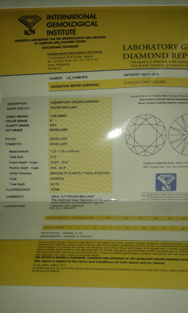 ใช้พลอยขาวได้รับการรับรองว่าเป็น VS1กะรัต1กะรัตสำหรับห้องปฏิบัติการที่ปลูกได้รับการรับรองว่าเป็นพลอยสีขาว