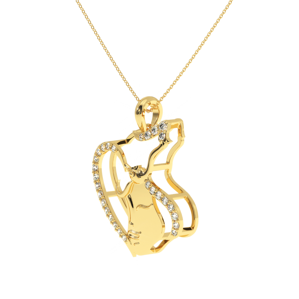 AJRETAIL จี้รูปหัวใจแม่และเด็ก-0.19 กะรัต เพชรธรรมชาติ ทรงบริลเลียนท์คัท สี EF ความใส VS ชุบทอง ได้รับการรับรองจาก IGI
