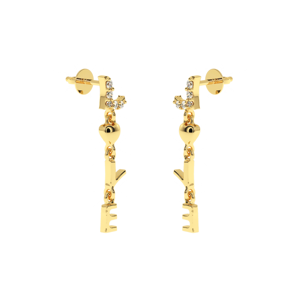 AJRETAIL Romantic Love Letter Drop Diamond Earrings IGI Certified 0.06 CT Natural HI Color VS-SI Clarity Gift