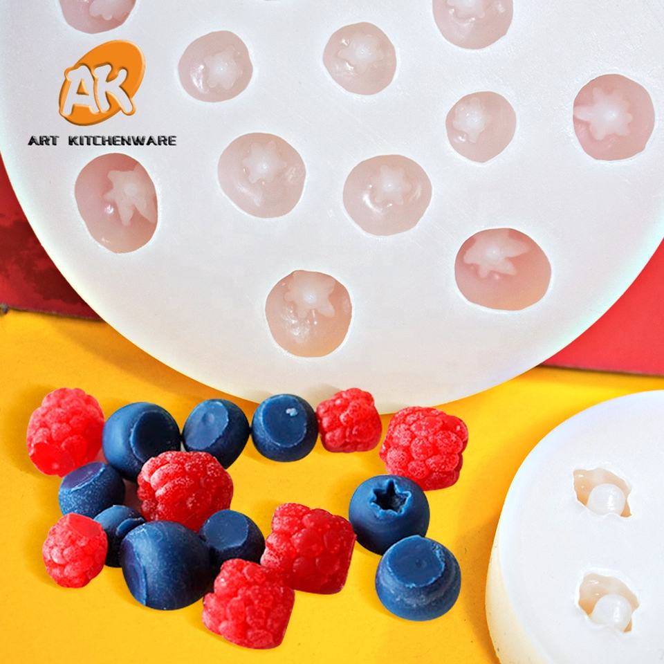 AK 3D ผลไม้บลูเบอร์รี่คัพเค้กเทียนเครื่องปั้นแม่พิมพ์เทียนราสเบอร์รี่น่ารักแม่พิมพ์ซิลิโคนสำหรับเทียนขนมทำรายละเอียดแพคเกจ: