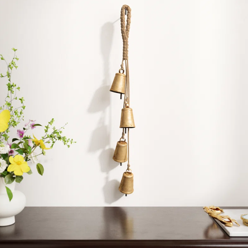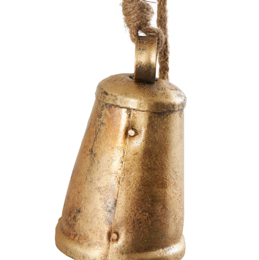 AK ระฆังทองเหลืองแบบโบราณชุดกระดิ่งเดี่ยวพร้อมเชือก4อันสำหรับตกแต่งคริสต์มาส