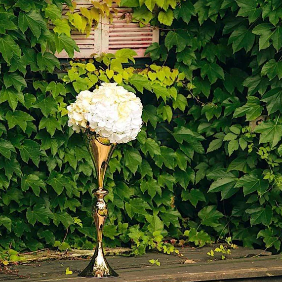 AK ทองเหลืองน่าสนใจทันสมัยตกแต่งโลหะทรัมเป็ตสีทองแจกันตกแต่งงานแต่งงานตกแต่งโต๊ะ
