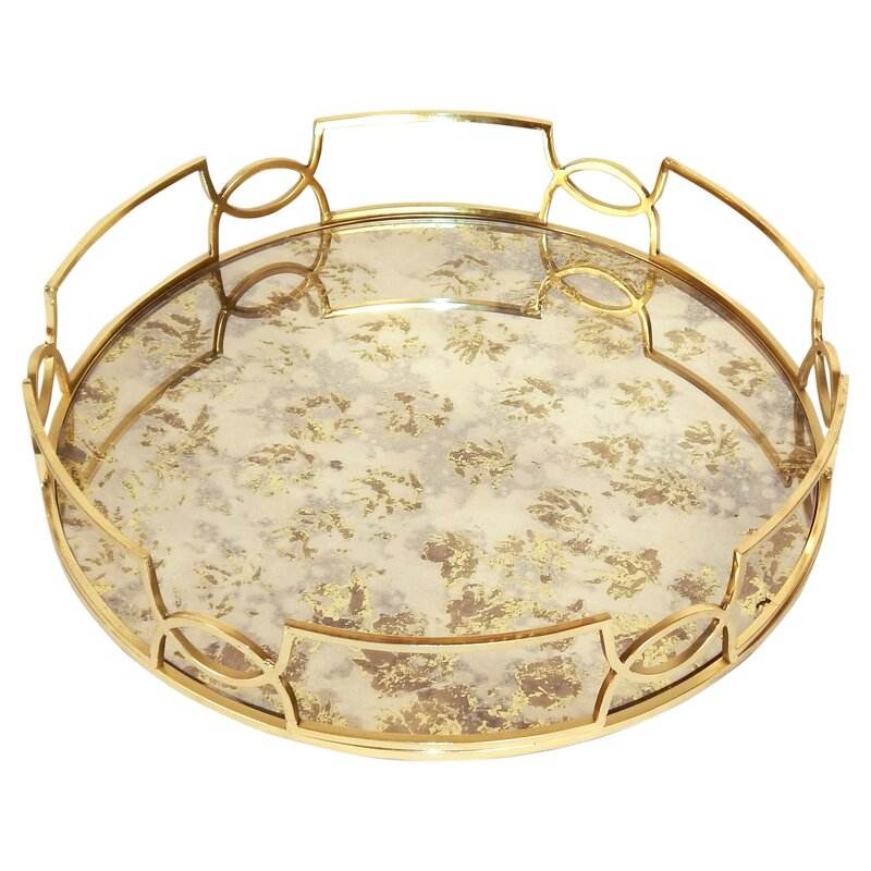 AK ถาดเสิร์ฟพิมพ์ลายสี่เหลี่ยมทำจากทองเหลืองตกแต่งพร้อมที่จับหลายสีสำหรับใช้บนโต๊ะอาหาร/เครื่องครัว