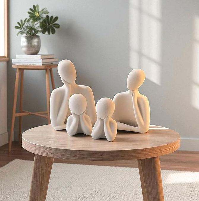 รูปปั้นครอบครัว AK ทำจากทองเหลือง งานประติมากรรมโลหะตั้งโต๊ะ สีขาว ชุด 4 ชิ้น สำหรับตกแต่งโต๊ะ/ตกแต่งโต๊ะทำงาน