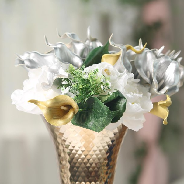 AK แจกันโลหะสำหรับตกแต่งบ้าน,ทรัมเป็ตสีทองขนาดใหญ่แบบตอกโลหะไม่มีที่จับสีทองสนิม
