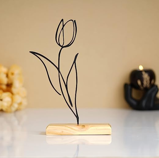 AK โต๊ะทองเหลืองสีดำดีไซน์กุหลาบเคลือบผงสำเร็จรูปพร้อมฐานไม้สำหรับตกแต่งบ้าน/ตกแต่งสำนักงาน