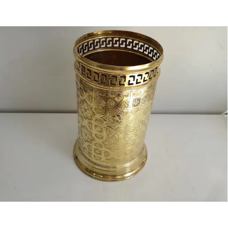 AK Brass Lattice Design Metal Waste Basket in Antique Finished Large Capacity Basket For Hotel Decor / Cafe Decor