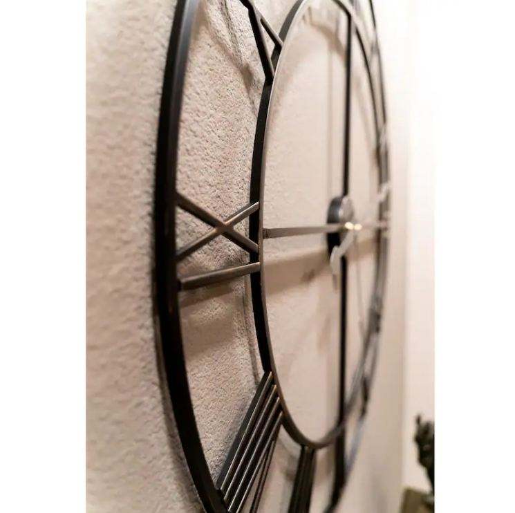AK นาฬิกาแขวนผนังโลหะทรงกลมตัวเลขโรมันสีดำนาฬิกากรอบเปิดสำเร็จรูปสำหรับตกแต่งโรงแรมและร้านอาหาร