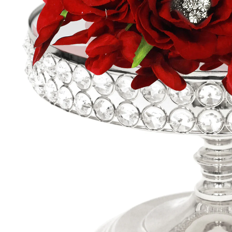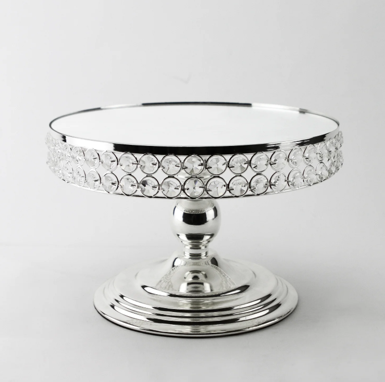 AK ที่วางเค้กโลหะทรงกลมทำจากทองเหลืองพร้อมแท่นวางเค้กตกแต่งด้วยนิกเกิลในคริสตัลสำหรับงานเลี้ยงวันเกิดของตกแต่งคาเฟ่ปาร์ตี้