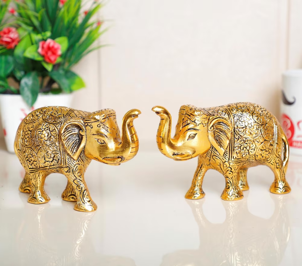 AK ชุดโต๊ะทองเหลืองรูปทรงช้างขนาดเล็ก2ชิ้นตกแต่งด้วยทองสำหรับตกแต่งบ้านเครื่องประดับกลางโต๊ะ
