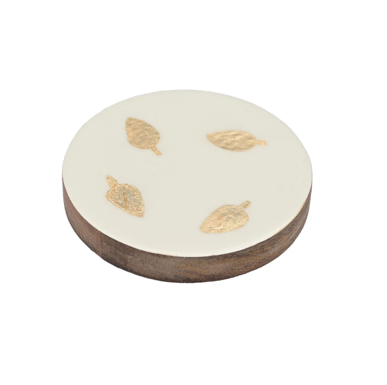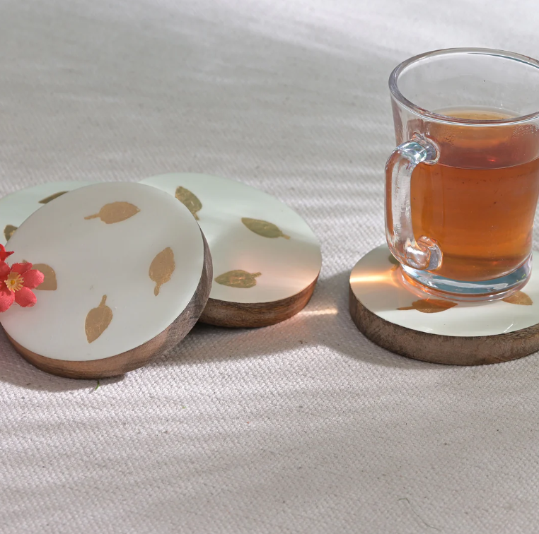 AK รถไฟเหาะไม้ทรงกลมพิมพ์ลายใบไม้เล็กๆชุดละ4ชิ้นสำหรับตกแต่งภายในโต๊ะ