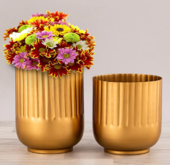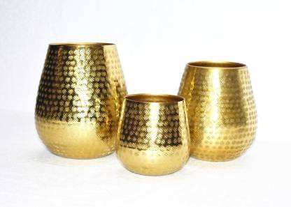 AK ชุดกระถางทองเหลืองชุบโลหะสีทองสามใบสำหรับระเบียงในร่มห้องนั่งเล่นห้องวาดภาพ