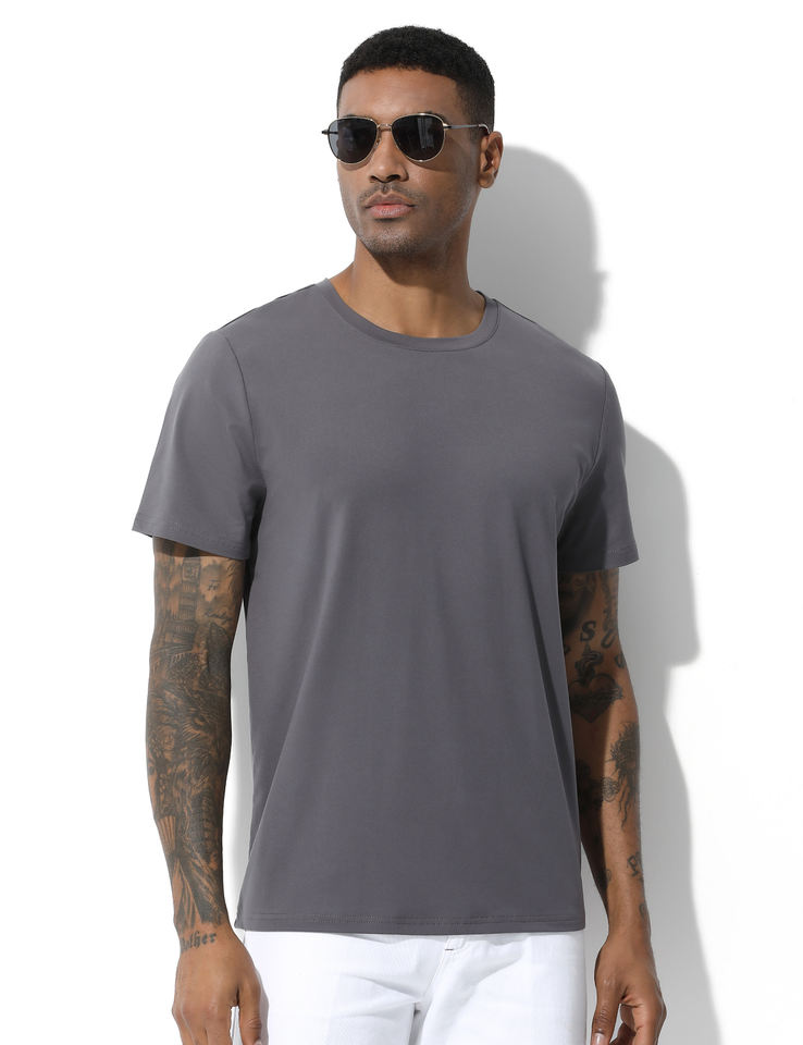 AK เสื้อยืดสำหรับผู้ชายแห้งเร็วย้อมสีพื้นพิมพ์ลายโลโก้สำหรับยิมฤดูร้อน