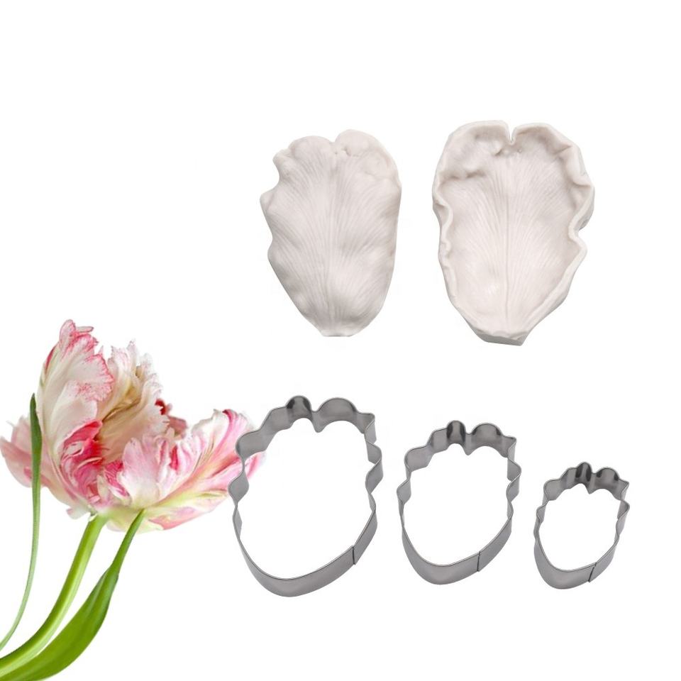 AK Parrot Tulip เครื่องครัวทำจากซิลิโคน,ชุดเครื่องมือทำดอกไม้สำหรับตกแต่งเค้กปี A-357และ VM089